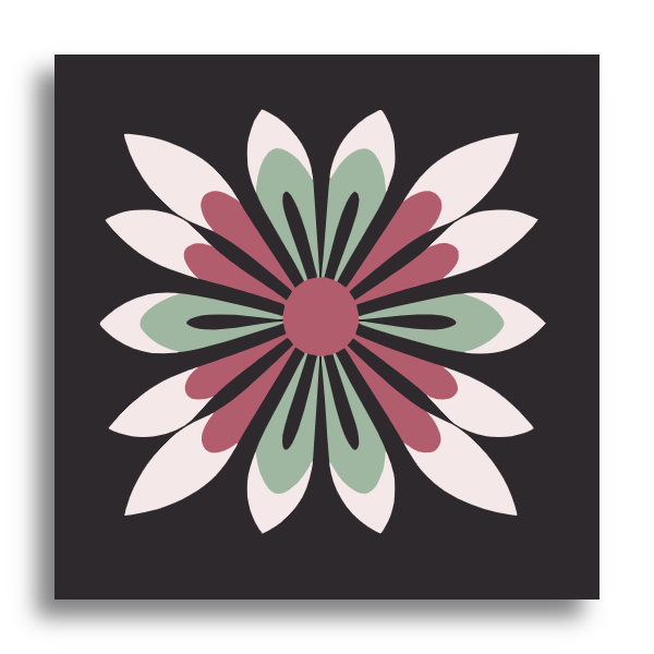 Este azulejo decorativo muestra un cautivador patrón inspirado en el encáustico, con un diseño floral simétrico. En su centro hay un motivo circular rodeado de formas similares a pétalos. La paleta incluye suaves tonos pastel: amarillo claro, azul apagado y terracota cálida, sobre un fondo oscuro. Esta combinación de elementos florales geométricos audaces y encanto vintage da como resultado una pieza decorativa que es tanto visualmente impactante como armoniosamente colorida.