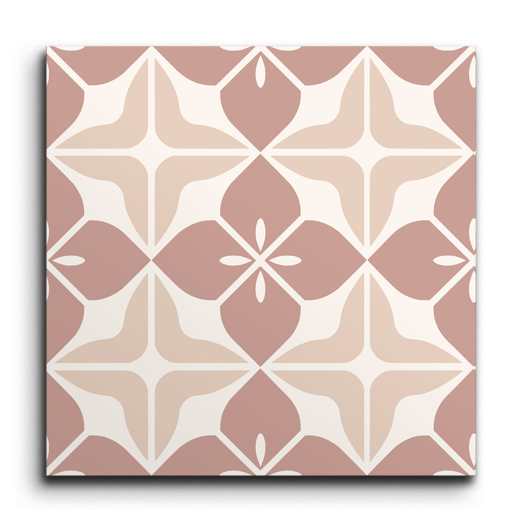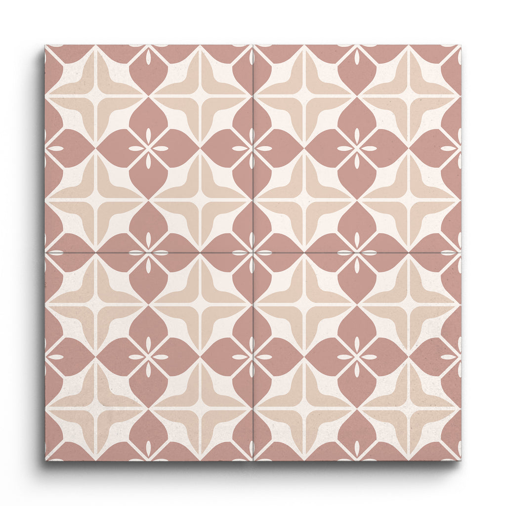 Este azulejo decorativo presenta un encantador diseño geométrico que aporta un toque de arte a cualquier espacio. Sus formas simétricas forman un motivo armonioso, realzado por una paleta de suaves tonos beige y rosa. Delicados acentos blancos proporcionan un suave contraste, añadiendo profundidad y definición al patrón. El estilo encáustico captura la esencia de la artesanía tradicional, mientras que los colores sutiles le confieren un aire contemporáneo. La estética elegante y atemporal de este azulejo lo convierte en una opción versátil para diversos entornos interiores.