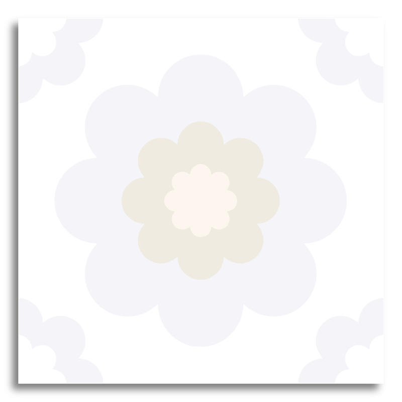 This decor tile presents a serene pattern of overlapping floral shapes, rendered in gentle shades of gray and off-white. The symmetrical design offers a sense of balance, while the understated palette and clean lines contribute to a modern, minimalist aesthetic. Perfect for contemporary settings, it adds a touch of elegance with its calming and harmonious presence.
